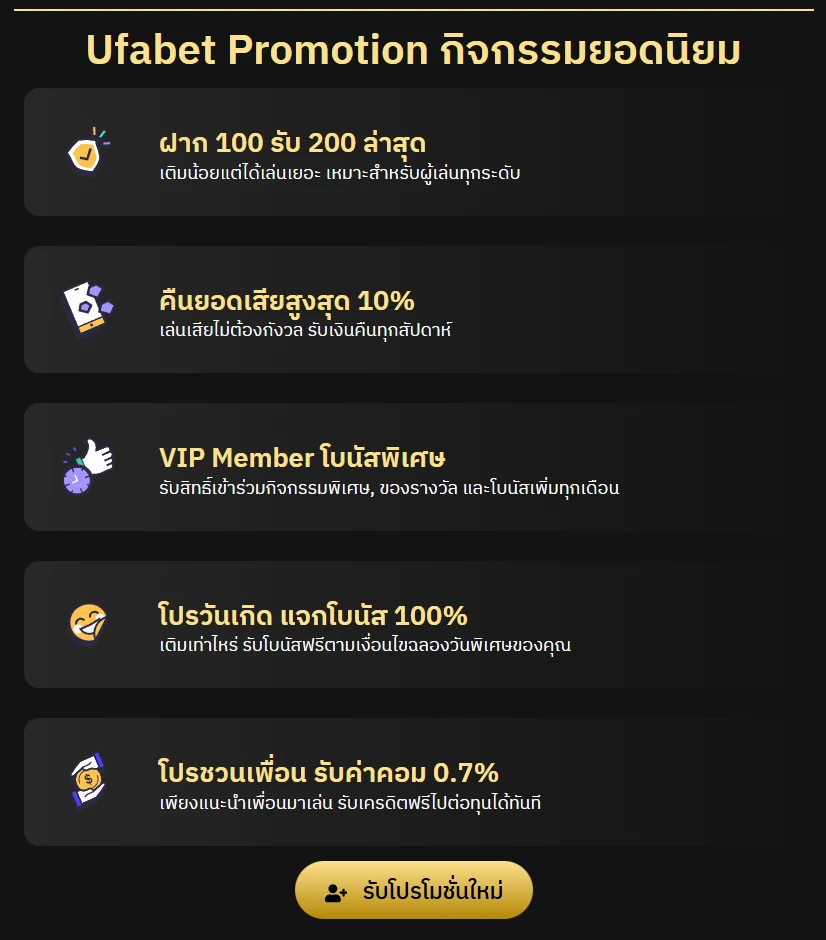 การสมัครสมาชิกกับ UFA 168 ไม่เพียงแต่เปิดโอกาสให้คุณเข้าถึงระบบการเดิมพันที่ครบวงจรเท่านั้น แต่ยังมาพร้อมกับข้อเสนอสุดพิเศษสำหรับสมาชิกใหม่ นั่นคือ โบนัสและเครดิตฟรี 100% เมื่อสมัครและลงทะเบียนวันนี้ โปรโมชั่นนี้ช่วยเพิ่มทุนเริ่มต้นในการเล่น ทำให้คุณมีโอกาสทำกำไรได้มากขึ้นตั้งแต่เริ่มต้น โดยไม่ต้องฝากเงินจำนวนมากก็สามารถเริ่มต้นเดิมพันได้ทันที ซึ่งถือเป็นจุดเด่นที่ตอบโจทย์ทั้งผู้เล่นหน้าใหม่และผู้ที่มีประสบการณ์ในวงการการพนันออนไลน์ ยูฟ่าเบท168 เป็นเว็บไซต์เดิมพันออนไลน์ที่ได้รับความนิยมอย่างแพร่หลาย ด้วยระบบที่ทันสมัย ใช้งานง่าย และรวบรวมเกมเดิมพันไว้อย่างครบถ้วน ไม่ว่าจะเป็นการเดิมพันกีฬา คาสิโนสด สล็อต เกมยิงปลา หรือเกมยอดฮิตอื่น ๆ ผู้เล่นสามารถเลือกสนุกได้ในแพลตฟอร์มเดียว โดยไม่จำเป็นต้องสมัครหลายเว็บไซต์ ช่วยประหยัดเวลาและเพิ่มความสะดวกสบายในการใช้งาน